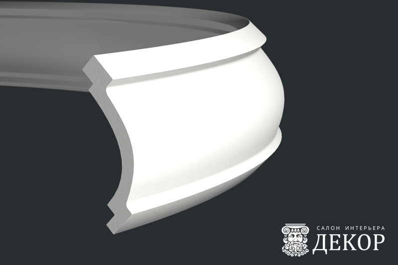 Ширина по потолку: 90 мм Длина детали: 2010 мм Высота по стене: 72 мм Радиус изгиба выпуклый: 3000 мм Радиус изгиба вогнутый: 2500 мм