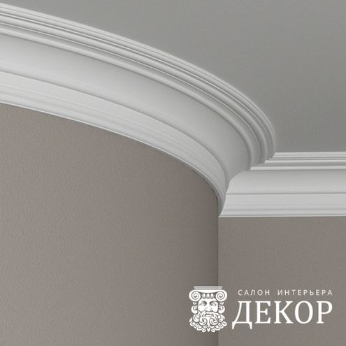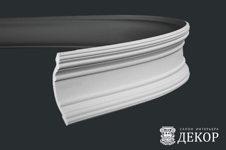 Ширина по потолку: 119 мм Длина детали: 2000 мм Высота по стене: 120 мм Радиус изгиба выпуклый: 3000 мм Радиус изгиба вогнутый: 3000 мм