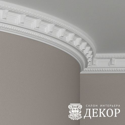Ширина по потолку: 95 мм Длина детали: 2000 мм Высота по стене: 102 мм Радиус изгиба выпуклый: 2500 мм Радиус изгиба вогнутый: 2000 мм