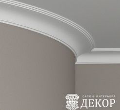 Ширина по потолку: 114 мм Длина детали: 2010 мм Высота по стене: 79 мм Радиус изгиба выпуклый: 2500 мм Радиус изгиба вогнутый: 2000 мм