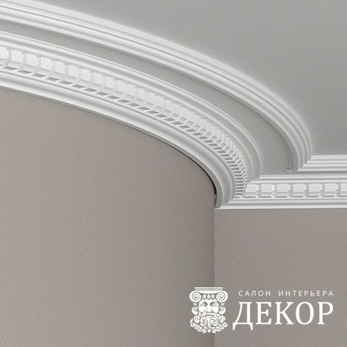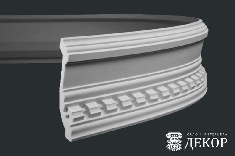 Ширина по потолку: 188 мм Длина детали: 2000 мм Высота по стене: 84 мм Радиус изгиба выпуклый: 5000 мм Радиус изгиба вогнутый: 4500 мм