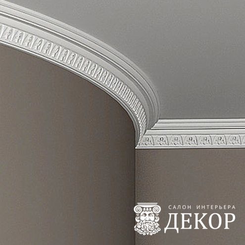 Ширина по потолку: 51 мм Длина детали: 2010 мм Высота по стене: 52 мм Радиус изгиба выпуклый: 1500 мм Радиус изгиба вогнутый: 1000 мм