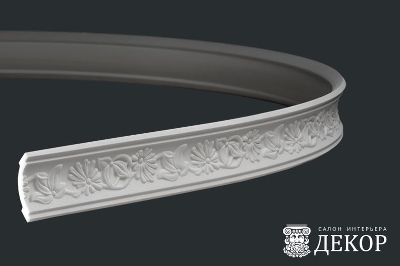 Ширина по потолку: 50 мм Длина детали: 2010 мм Высота по стене: 53 мм Радиус изгиба выпуклый: 1500 мм Радиус изгиба вогнутый: 1000 мм