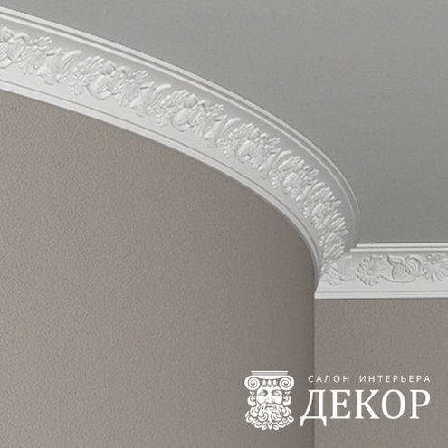 Ширина по потолку: 50 мм Длина детали: 2010 мм Высота по стене: 53 мм Радиус изгиба выпуклый: 1500 мм Радиус изгиба вогнутый: 1000 мм