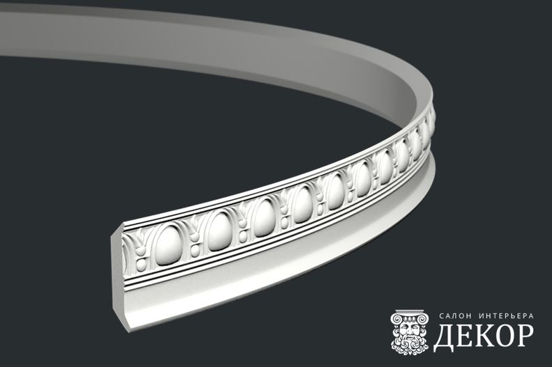 Ширина по потолку: 55 мм Длина детали: 2010 мм Высота по стене: 51 мм Радиус изгиба выпуклый: 1500 мм Радиус изгиба вогнутый: 1000 мм