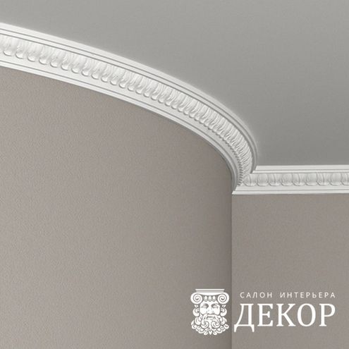 Ширина по потолку: 55 мм Длина детали: 2010 мм Высота по стене: 51 мм Радиус изгиба выпуклый: 1500 мм Радиус изгиба вогнутый: 1000 мм
