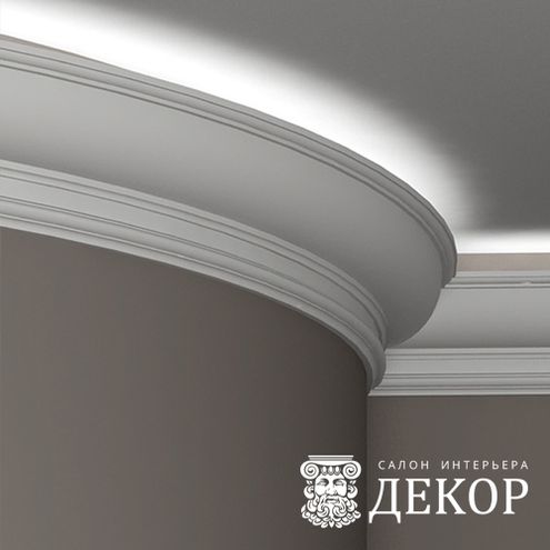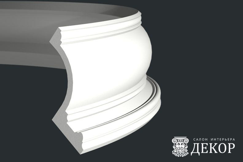 Ширина по потолку: 118 мм Длина детали: 2010 мм Высота по стене: 151 мм Радиус изгиба выпуклый: 4000 мм Радиус изгиба вогнутый: 3500 мм