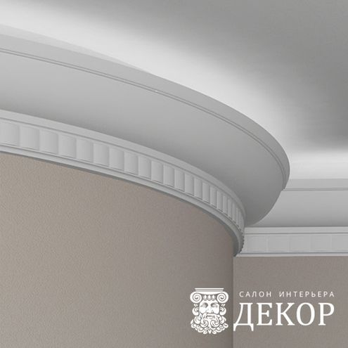 Ширина по потолку: 121 мм Длина детали: 2010 мм Высота по стене: 155 мм Радиус изгиба выпуклый: 4000 мм Радиус изгиба вогнутый: 3500 мм