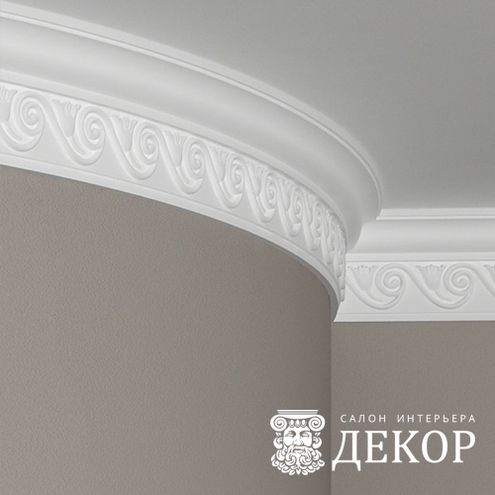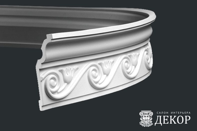 Ширина по потолку: 73 мм Длина детали: 2010 мм Высота по стене: 164 мм Радиус изгиба выпуклый: 1500 мм Радиус изгиба вогнутый: 2000 мм