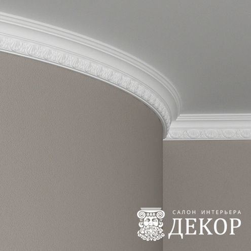 Ширина по потолку: 55 мм Длина детали: 2010 мм Высота по стене: 70 мм Радиус изгиба выпуклый: 1500 мм Радиус изгиба вогнутый: 1500 мм