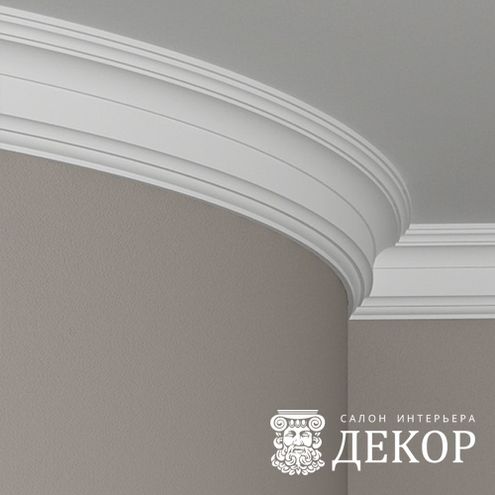 Ширина по потолку: 93 мм Длина детали: 2010 мм Высота по стене: 130 мм Радиус изгиба выпуклый: 2500 мм Радиус изгиба вогнутый: 2000 мм