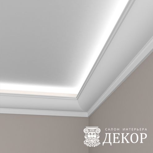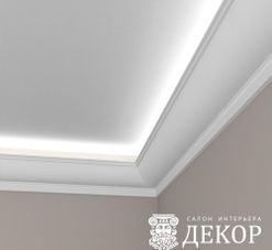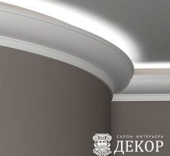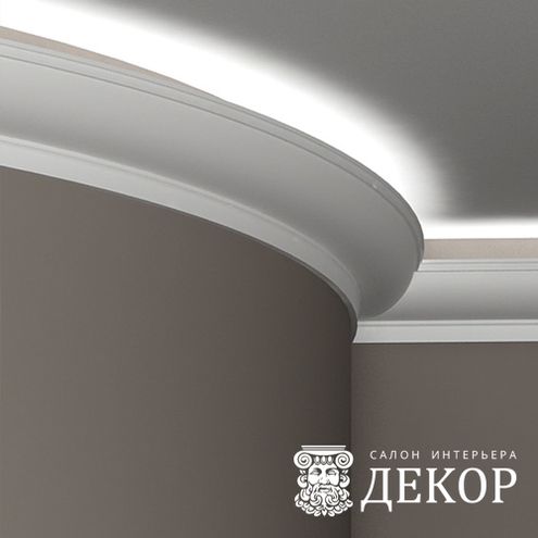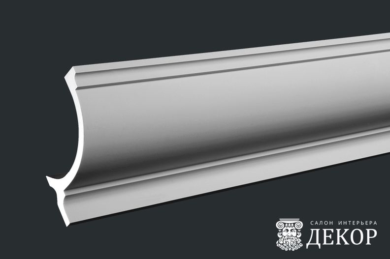 Ширина по потолку: 102 мм Длина детали: 1980 мм Высота по стене: 101 мм Радиус изгиба выпуклый: 3500 мм Радиус изгиба вогнутый: 3000 мм
