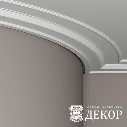 Ширина по потолку: 47 мм Длина детали: 2010 мм Высота по стене: 220 мм Радиус изгиба выпуклый: 550 мм Радиус изгиба вогнутый: 550 мм Радиус изгиба арочный: 4500 мм