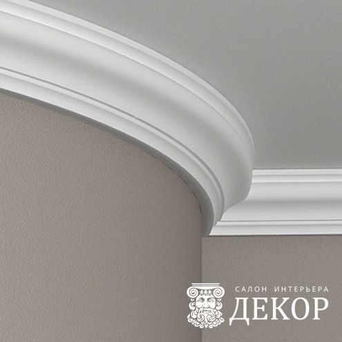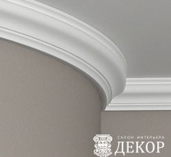 Ширина по потолку: 75 мм Длина детали: 2010 мм Высота по стене: 86 мм Радиус изгиба выпуклый: 2500 мм Радиус изгиба вогнутый: 1500 мм