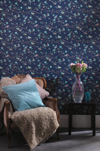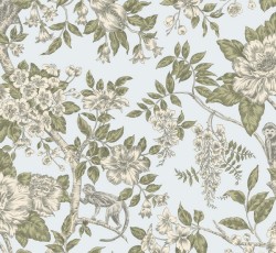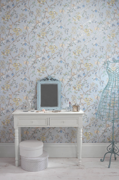Коллекция решена в викторианском стиле. В ней собраны современные дизайнерские и исторические принты, изображающие цветы в традиционном английском саду и птиц в ветвях деревьев. Популярная цветовая палитра включает оттенки яичной скорлупы, синего, кремового, бежевого, бледно-розового и серого. Приглушенные металлизированные детали придают дизайнам особую элегантность
